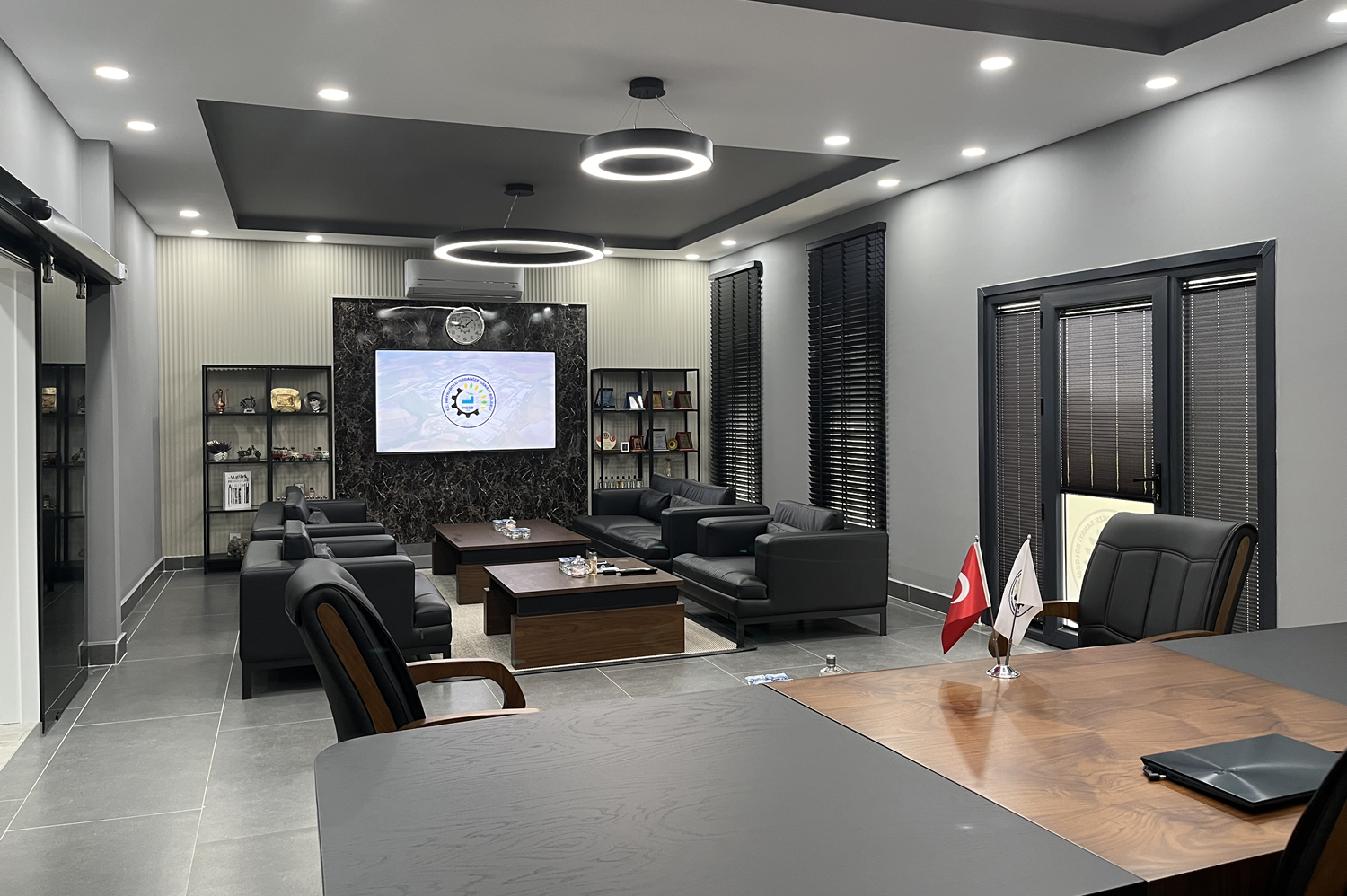 Tasarımın tamamlanmasının ardından, uygulama süreci uzman ekiplerimizce titizlikle yürütülmüş, zemin kaplamaları, duvar panelleri, aydınlatma sistemleri, elektrik ve data altyapısı gibi tüm teknik uygulamalar entegre şekilde tamamlanmıştır. Proje, anahtar teslim olarak eksiksiz ve zamanında OSB yönetimine teslim edilmiştir.