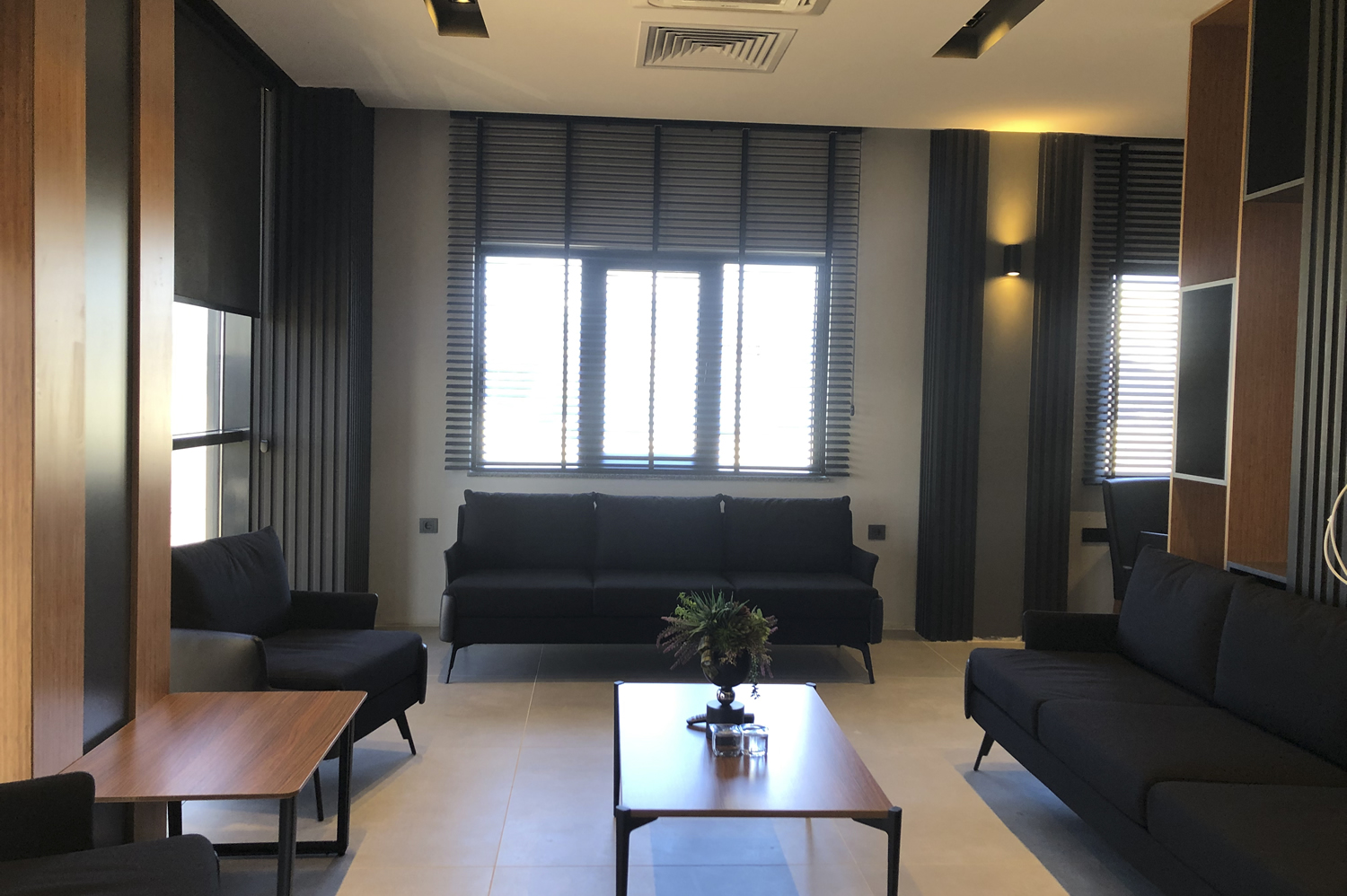 Bekleme alanı ise yönetim katının misafirlerini karşılayan ilk nokta olması sebebiyle hem sıcak hem de kurumsal bir atmosferde tasarlanmıştır. Oturma grupları, sehpa ve tamamlayıcı ürünlerin yerleşimi, hem alanın sirkülasyonunu engellemeyecek hem de konfor sağlayacak biçimde özenle kurgulanmıştır. Mobilyaların seçiminden montajına kadar tüm süreçte estetik anlayış ile fonksiyonel beklentiler arasında doğru bir denge gözetilmiş, projenin her adımında kalite ve detay odaklı bir işçilik sergilenmiştir.